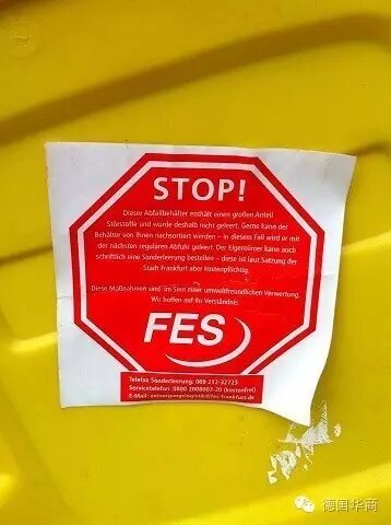 垃圾分類(lèi)錯(cuò)誤,垃圾處理公司給與的警告(法蘭克福地區(qū))