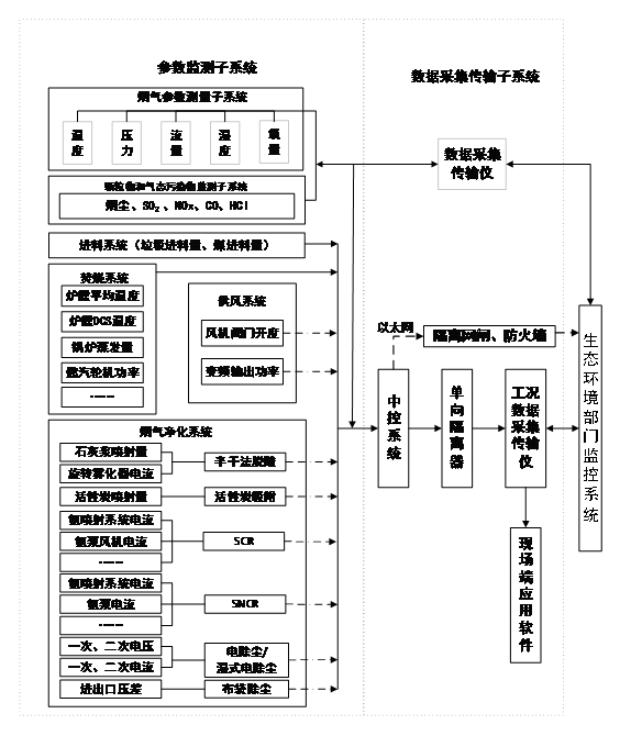 圖1生活垃圾焚燒發(fā)電廠煙氣排放過程(工況)監(jiān)控系統(tǒng)示意