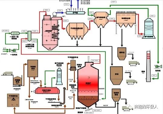 煙氣處理系統(tǒng):靜電除塵器、布袋除塵器、濕式洗滌塔、再熱器(煙煙換熱)、煙囪排放(60m高)