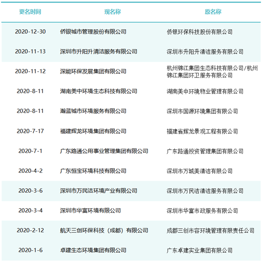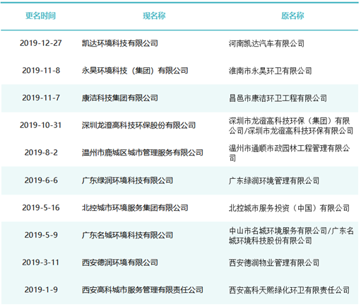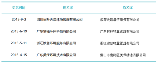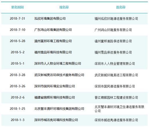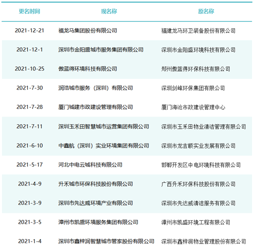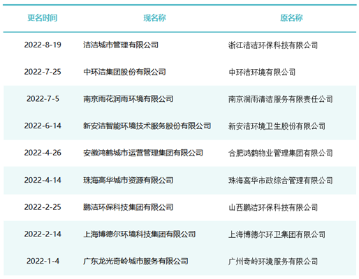 作為玉禾田[300815]最主要的環(huán)衛(wèi)項目投標主體,玉禾田物業(yè)清潔公司在名稱上用“智慧城市運營”替換“物業(yè)清潔”,則是希望轉型邁向智慧城市運營商之路。司南君在對近八年的更名規(guī)律進行總結與梳理發(fā)現(xiàn),環(huán)衛(wèi)企業(yè)“更名潮”大概可以分為三個階段。第一波更名潮從2015-2018年。第一波更名潮追求專業(yè)化發(fā)展道路,這個時期的更名熱詞是“環(huán)境服務”、“環(huán)境科技”、”環(huán)保產業(yè)“、“環(huán)保技術”,一大批清潔公司、保潔公司、環(huán)衛(wèi)公司、物業(yè)公司更名為“環(huán)境服務公司”、“環(huán)境科技公司”、”環(huán)保技術公司“。第二波更名潮從2019年到2021年。第二波更名潮集體轉向城市綜合服務方向。這一時期的更名熱點是“城市管理”、“城市服務”、“城市管家”、“智慧城市運營”、“公共事業(yè)管理”等,用這些熱詞替代“環(huán)保技術”、“環(huán)衛(wèi)服務”、“環(huán)境科技”、“環(huán)境服務”等傳統(tǒng)環(huán)衛(wèi)詞匯。進入2022年度,環(huán)衛(wèi)企業(yè)迎來第三波更名潮。今后一定時期,環(huán)衛(wèi)行業(yè)的發(fā)展將面臨多重挑戰(zhàn),環(huán)衛(wèi)企業(yè)更名也將更富多元化,因此企業(yè)更名也必將根據每家公司對行業(yè)發(fā)展的理解認識及自身戰(zhàn)略定位而各有側重。2015年到2018年是環(huán)衛(wèi)市場化第一波大發(fā)展時期。這期間,環(huán)衛(wèi)市場化大閘初步敞開,PPP模式引入環(huán)衛(wèi)領域,城鄉(xiāng)環(huán)衛(wèi)一體化模式如火如荼,年化額超千萬元、合同額超億元的環(huán)衛(wèi)大標開始批量出現(xiàn),傳統(tǒng)物業(yè)清潔企業(yè)、非環(huán)衛(wèi)類物業(yè)公司大量涌入環(huán)衛(wèi)行業(yè)。因此,環(huán)衛(wèi)企業(yè)第一波更名潮追求專業(yè)化發(fā)展道路,這個時期的更名熱詞是“環(huán)境服務”、“環(huán)境科技”、”環(huán)保產業(yè)“、“環(huán)保技術”,一大批清潔公司、保潔公司、環(huán)衛(wèi)公司、物業(yè)公司更名為“環(huán)境服務公司”、“環(huán)境科技公司”、”環(huán)保技術公司“。這期間有近40家百強企業(yè)或日后發(fā)展成百強企業(yè)的環(huán)衛(wèi)公司完成了更名,如福建東飛環(huán)境集團有限公司、濱南生態(tài)環(huán)境集團股份有限公司、北京慧豐清軒環(huán)境科技集團有限公司、河北人和環(huán)境科技有限公司、浙江波普環(huán)境服務有限公司、深圳市陽光三環(huán)生態(tài)環(huán)境股份有限公司、深圳世路源環(huán)境有限公司(深兄環(huán)境)、廣東美保環(huán)境技術有限公司、泓欣環(huán)境集團有限公司等。第二波:從“環(huán)衛(wèi)服務”到“城市管家”2019年到2021年是“環(huán)衛(wèi)市場化”高潮向“城市大管家模式”的轉型期初期。這期間,環(huán)衛(wèi)市場化從大發(fā)展走向大高潮,城市精細化管理從“理念”走向“實踐”,各路國有物業(yè)公司積極推動城市大管家模式,大批頭部物管企業(yè)通過大并購等方式搶灘環(huán)衛(wèi)及城市服務市場。由此,順應時代大潮,環(huán)衛(wèi)企業(yè)第二波更名潮集體轉向城市綜合服務方向。這一時期的更名熱點是“城市管理”、“城市服務”、“城市管家”、“智慧城市運營”、“公共事業(yè)管理”等,用這些熱詞替代“環(huán)保技術”、“環(huán)衛(wèi)服務”、“環(huán)境科技”、“環(huán)境服務”等傳統(tǒng)環(huán)衛(wèi)詞匯。這期間有40余家知名環(huán)衛(wèi)企業(yè)完成了更名,如僑銀城市管理股份有限公司、北控城市環(huán)境服務集團有限公司、深圳玉禾田智慧城市運營集團有限公司、深圳市鑫梓潤智慧城市管家股份有限公司、康潔科技集團有限公司、西安高科城市服務管理有限責任公司、溫州市鹿城區(qū)城市管理服務有限公司、廣東路通公用事業(yè)管理集團有限公司、深圳市金陽盛城市服務集團有限公司。進入2022年度,環(huán)衛(wèi)企業(yè)迎來第三波更名潮。這一時期也將是城市管家模式完成第一輪測試后的大發(fā)展時期。圖表8:2022年度更名“百強企業(yè)”(截止2022年8月份)今后一定時期,環(huán)衛(wèi)行業(yè)的發(fā)展將面臨多重挑戰(zhàn):(一)以電動環(huán)衛(wèi)車、氫能環(huán)衛(wèi)車等為代表的“新能源化”;(二)以智慧環(huán)衛(wèi)與無人操作環(huán)衛(wèi)裝備為代表的“智能化”;(三)以城市大管家為代表的城市管理“精細化”;(四)以智慧市政、智慧城市為代表的“平臺化”;(五)以新型城鎮(zhèn)化和城鄉(xiāng)融合發(fā)展為代表的“全域化”;(六)城鄉(xiāng)生活垃圾分類“常態(tài)化”……這一時期有太多的不確定性,環(huán)衛(wèi)企業(yè)更名也將更富多元化,因此企業(yè)更名也必將根據每家公司對行業(yè)發(fā)展的理解認識及自身戰(zhàn)略定位而各有側重。其實,這個特點,從最近更名的“新安潔”和“中環(huán)潔”的新名稱可見一斑?!靶掳矟崱备靶掳矟嵵悄墉h(huán)境技術服務股份有限公司”,從“傳統(tǒng)環(huán)衛(wèi)”向“智能環(huán)境技術服務平臺”轉型;“中環(huán)潔”更名“中環(huán)潔集團股份有限公司”,以科技之力、為城市發(fā)展插上智慧之
